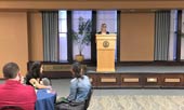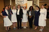 Historic postcards of nursing were the reason for a recent event at the School of Nursing! On April 14, the school hosted an evening reception and lecture around a special exhibit on "Pictures of Nursing: The Zwerdling Postcard Collection." The Zwerdling collection at the National Library of Medicine consists of postcards of nurses and the nursing profession, produced between 1893 and 2011. Pitt’s Health Sciences Library System brought a travelling exhibit about the collection to campus, and the School of Nursing was pleased to host the opening reception and lecture. Our speaker for the evening was Brigid Lusk, PhD, nurse historian and Director of University of Illinois at Chicago’s Midwest Nursing History Research Center. Dr. Lusk explored the history and import of postcard images of nursing, drawing interesting comparisons between the realities of nursing through the ages and the often idealized images of the profession included on such post cards. Attendees – Pitt Nursing alumni and faculty joined by visitors from the Pittsburgh-hosted ENRS conference – were delighted by the presence of Pitt Nursing students who brought some history to life by modeling historic nurse uniforms in the School’s collection!
